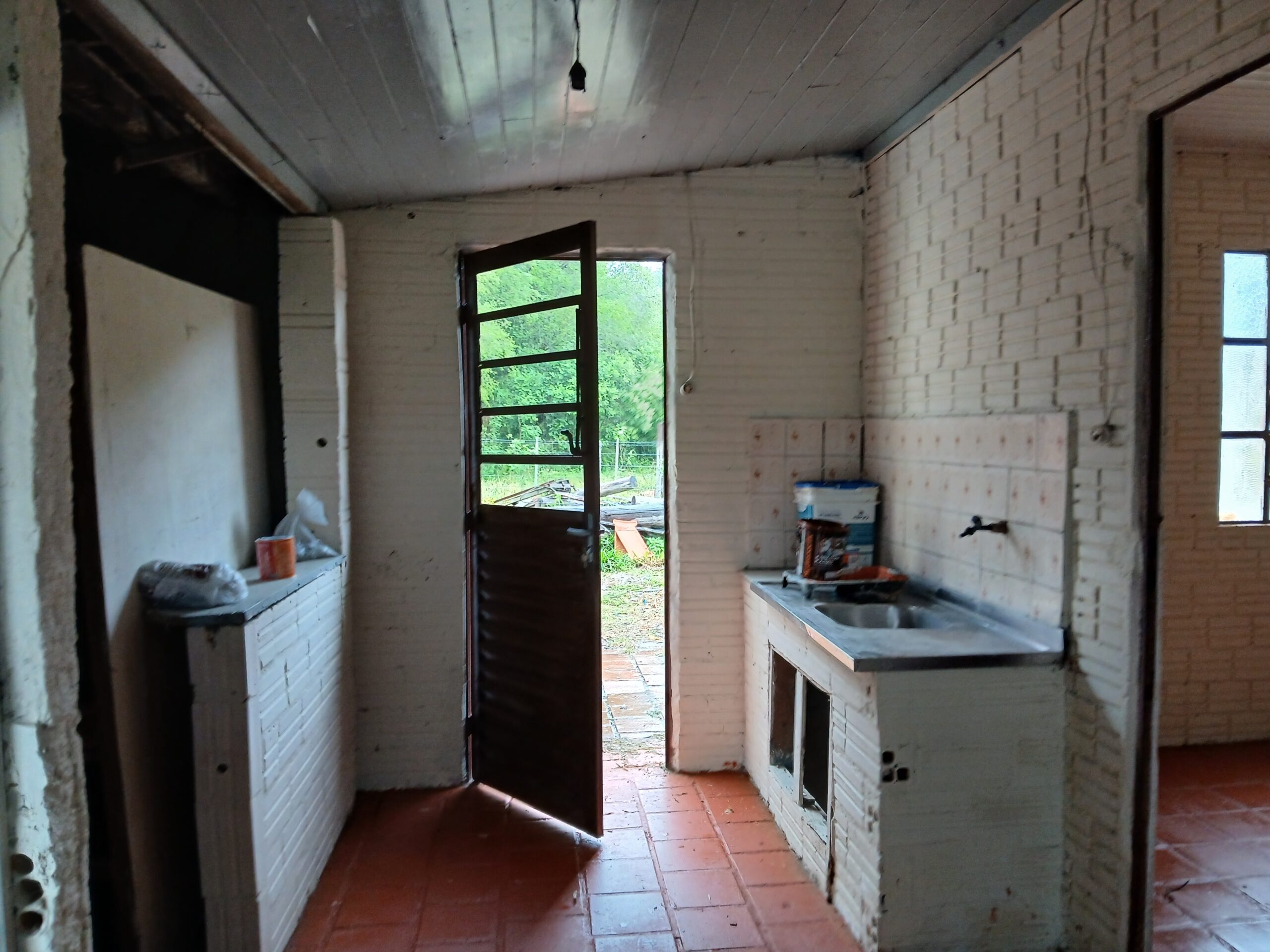 Casa de tijolos à vista, com 2 dormitórios, sala ampla, cozinha, banheiro, garagem com churrasqueira, área Grande nos fundos da casa.