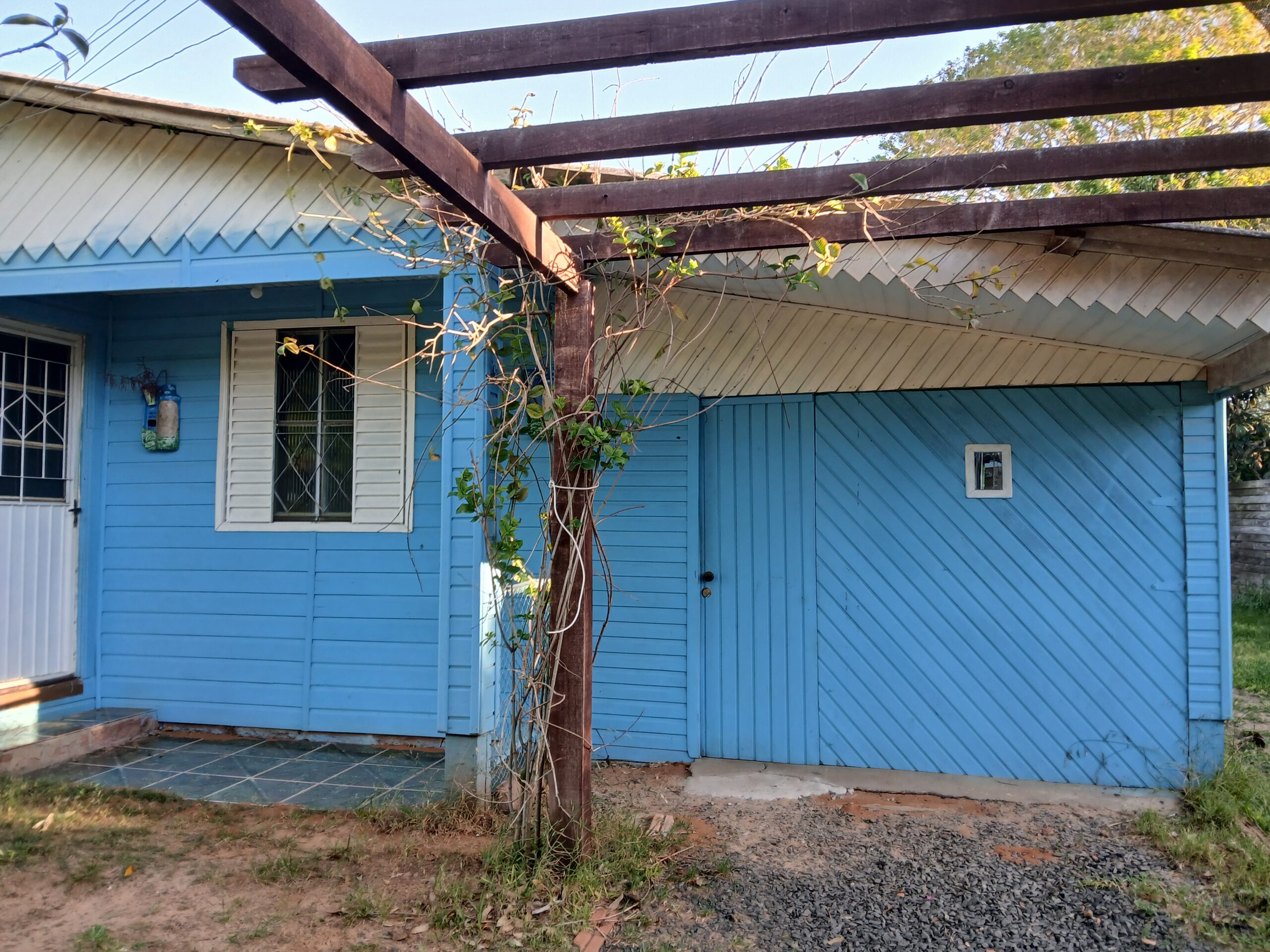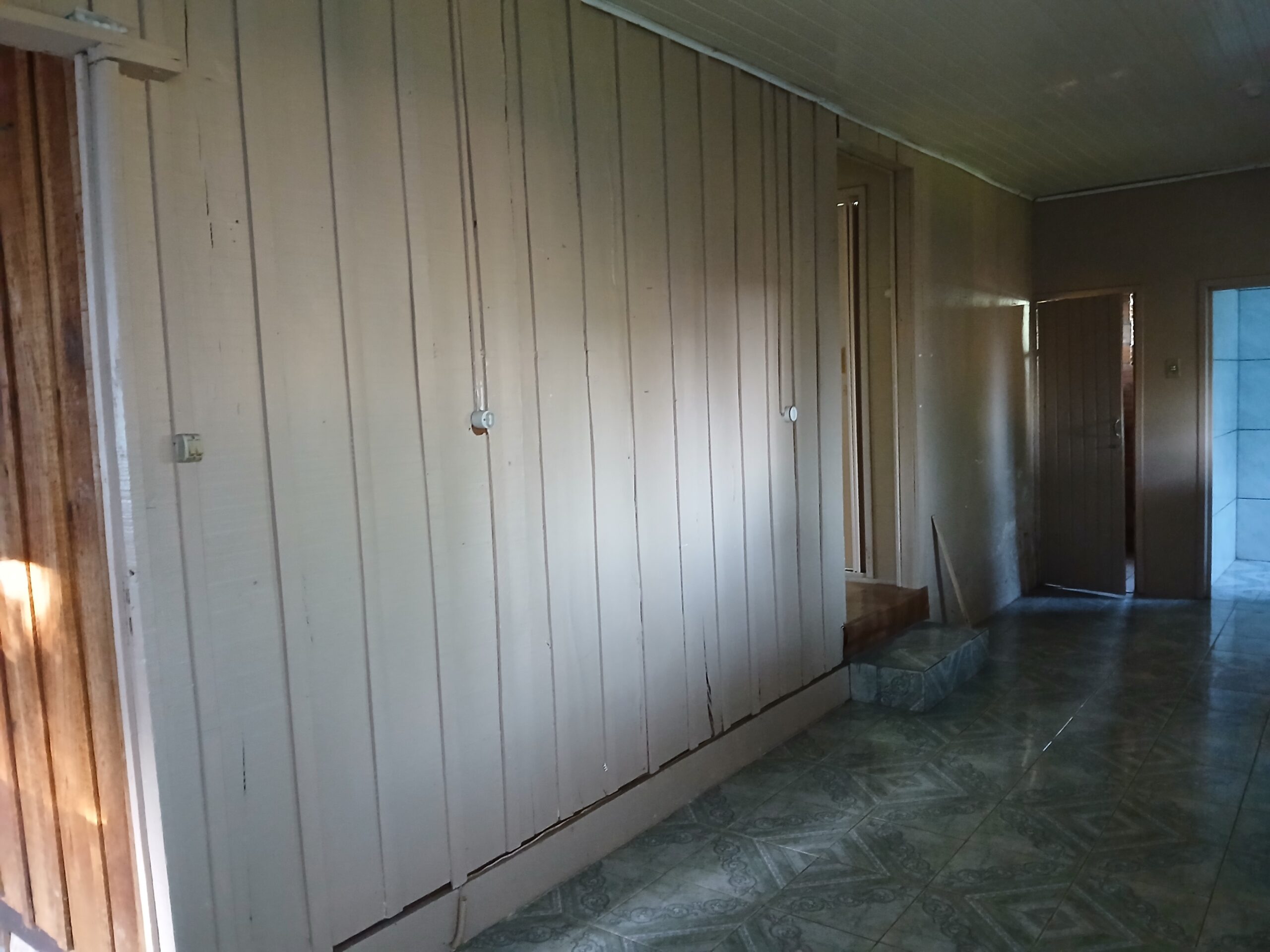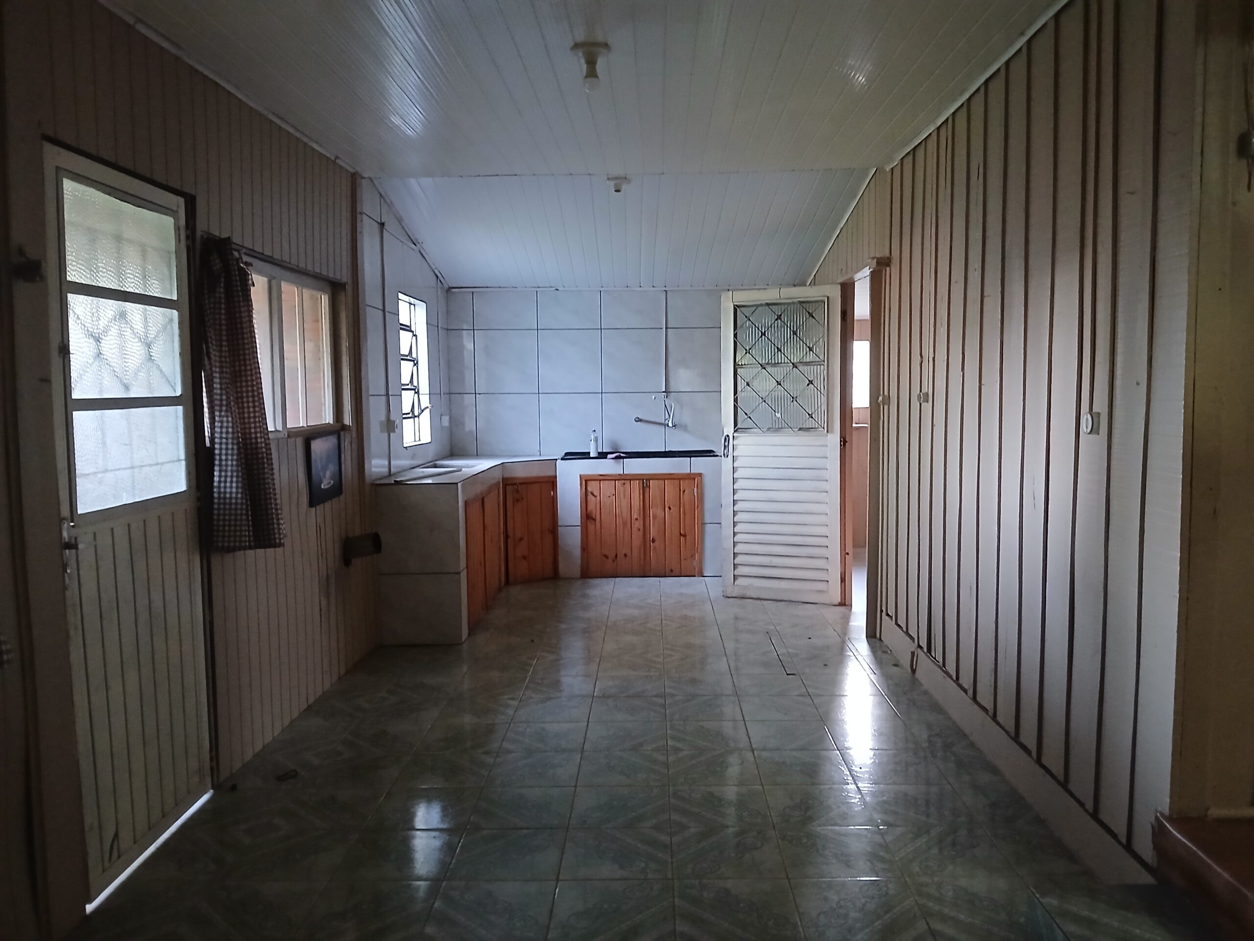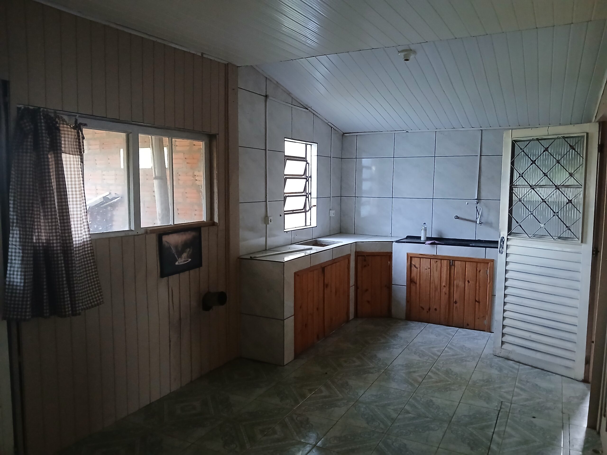 Casa mista com 3 dormitórios, sala, cozinha ampla com entrada para fogão a lenha, banheiro, lavabo, garagem e área nos fundos.