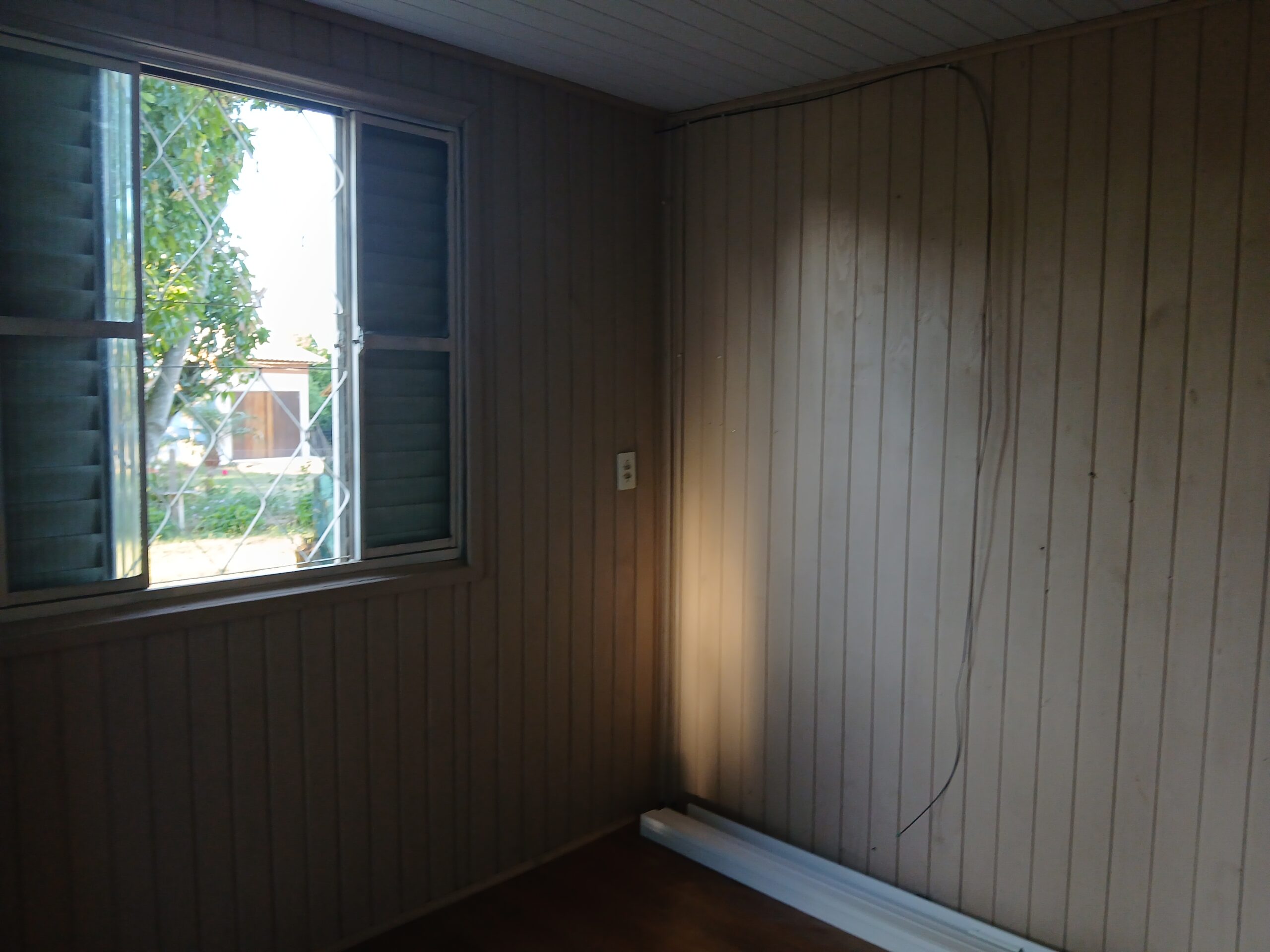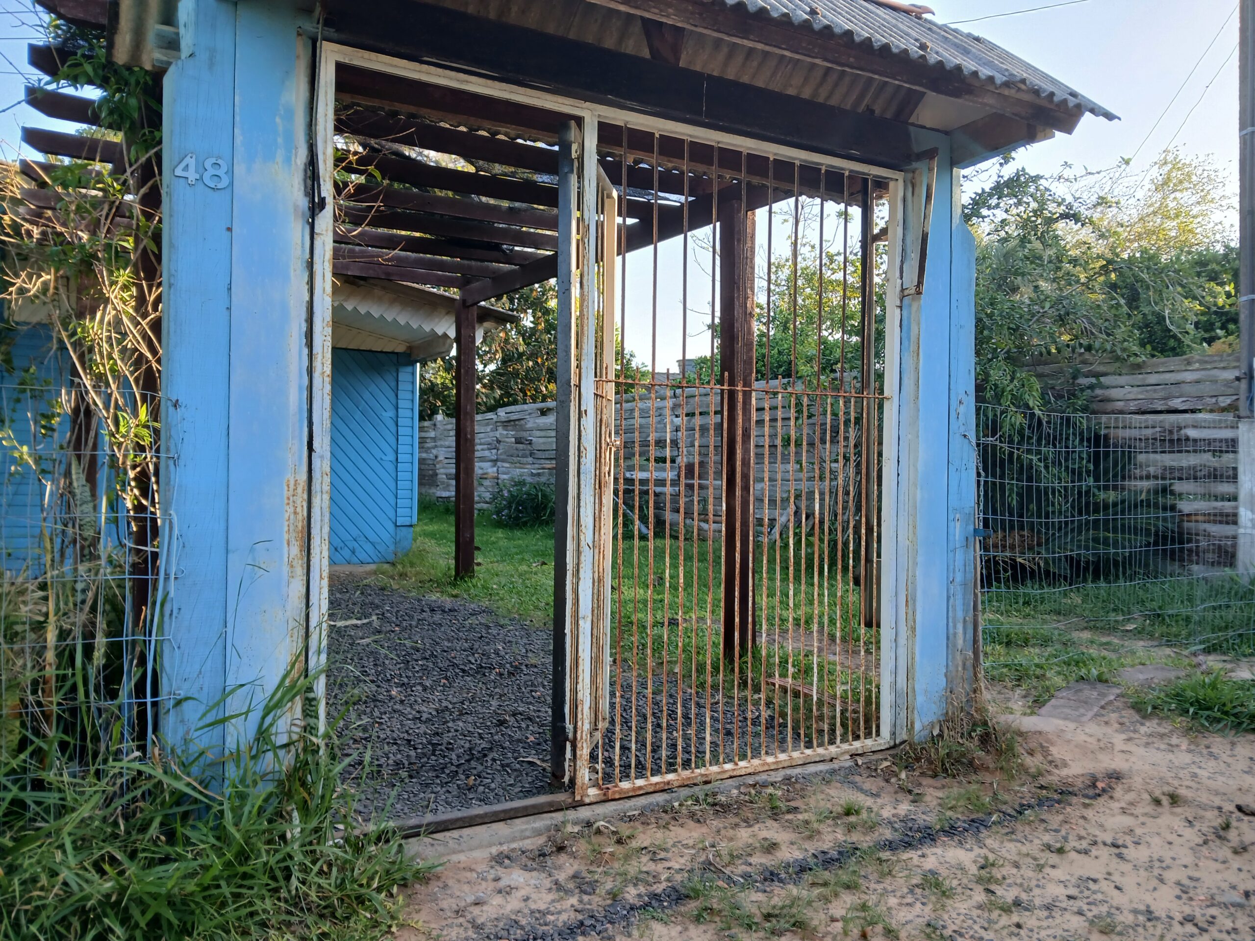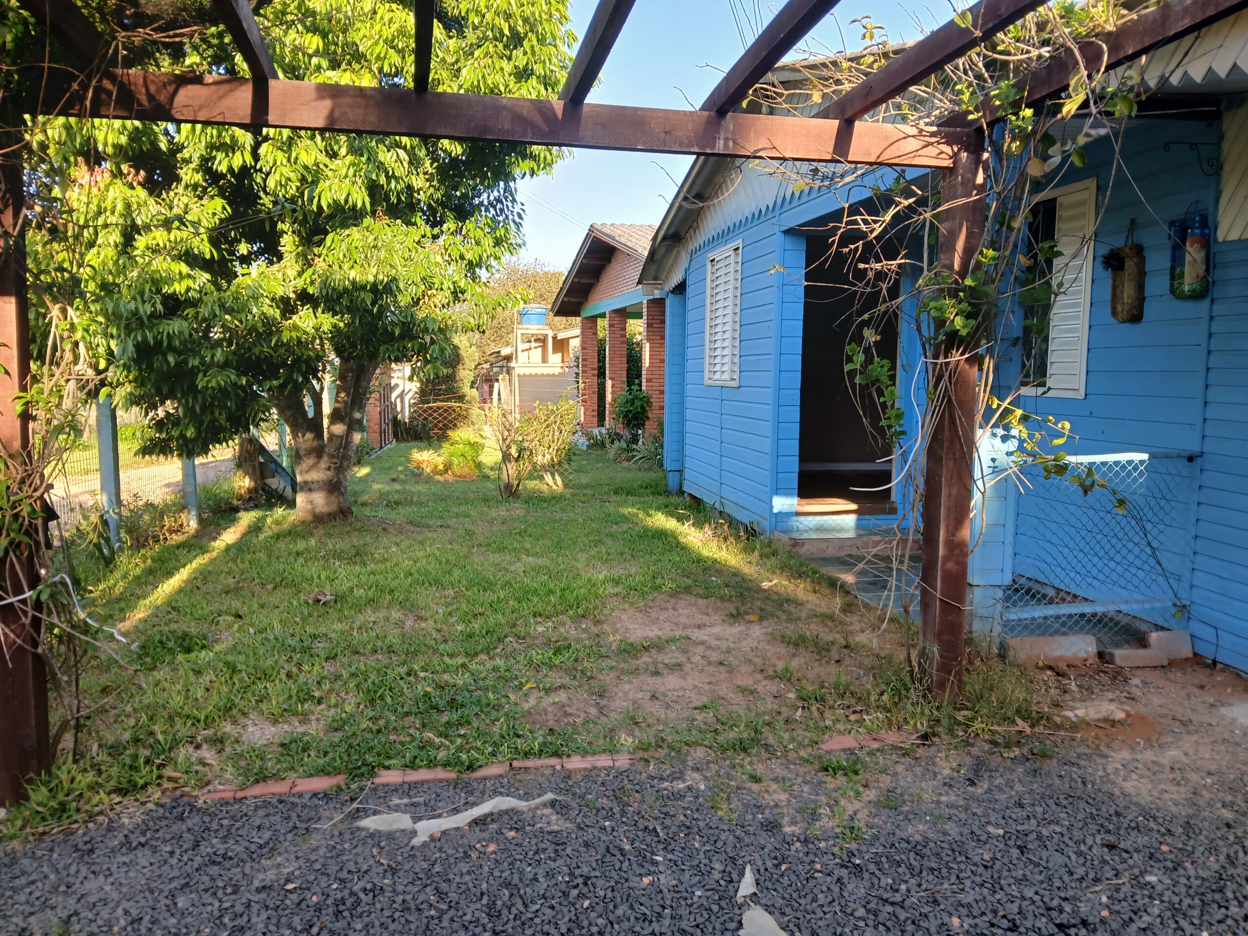 Casa mista com 3 dormitórios, sala, cozinha ampla com entrada para fogão a lenha, banheiro, lavabo, garagem e área nos fundos.