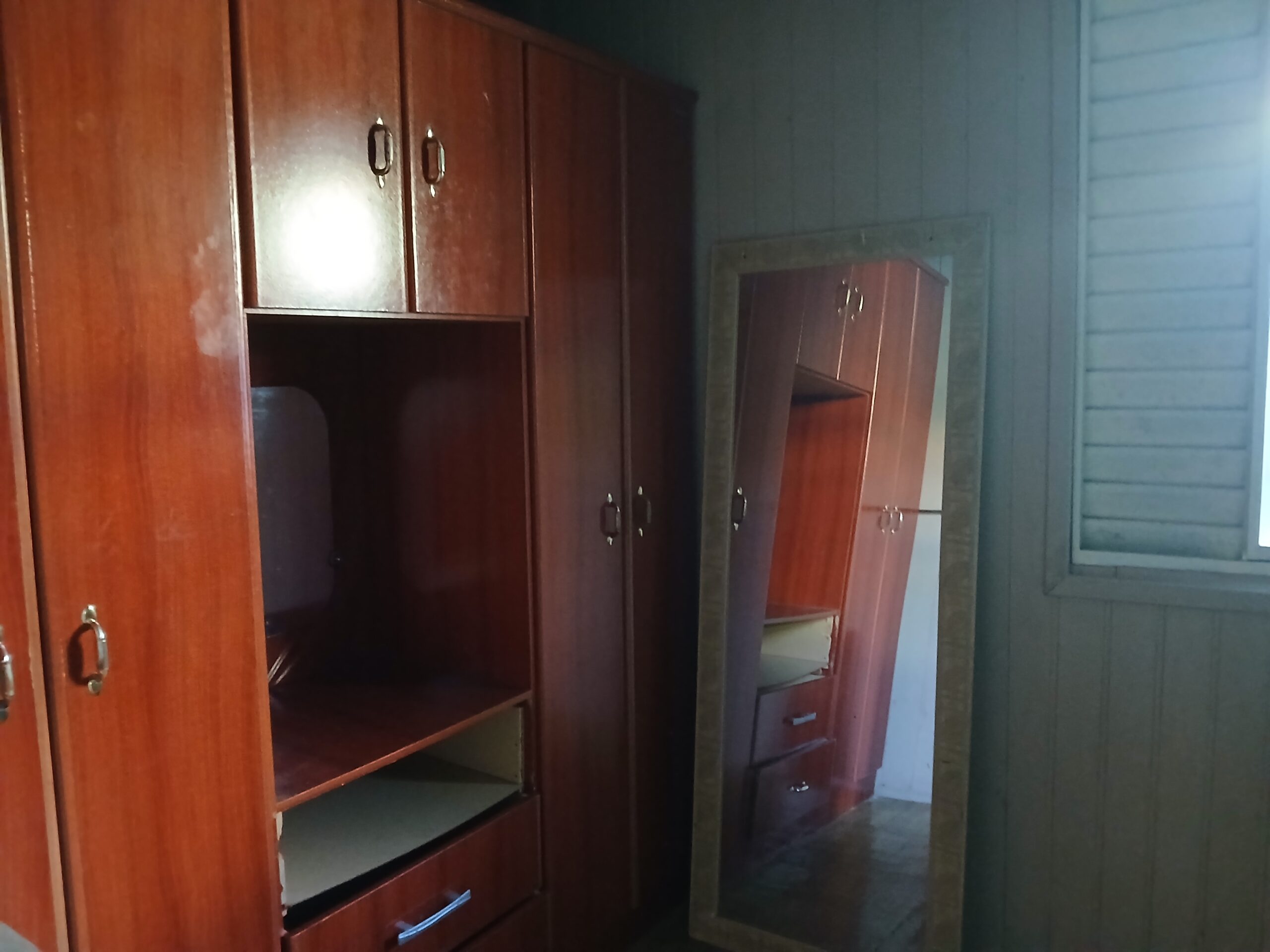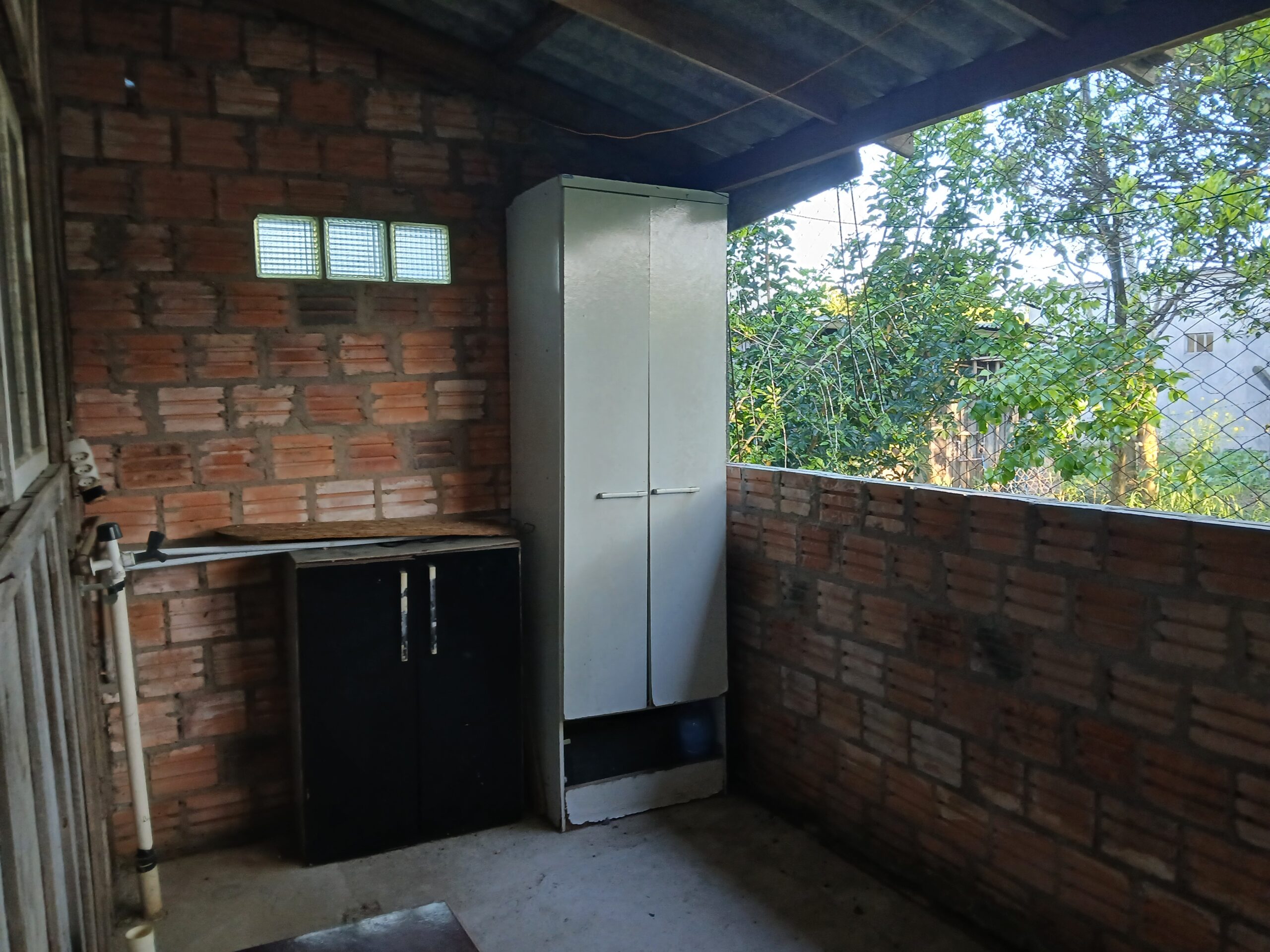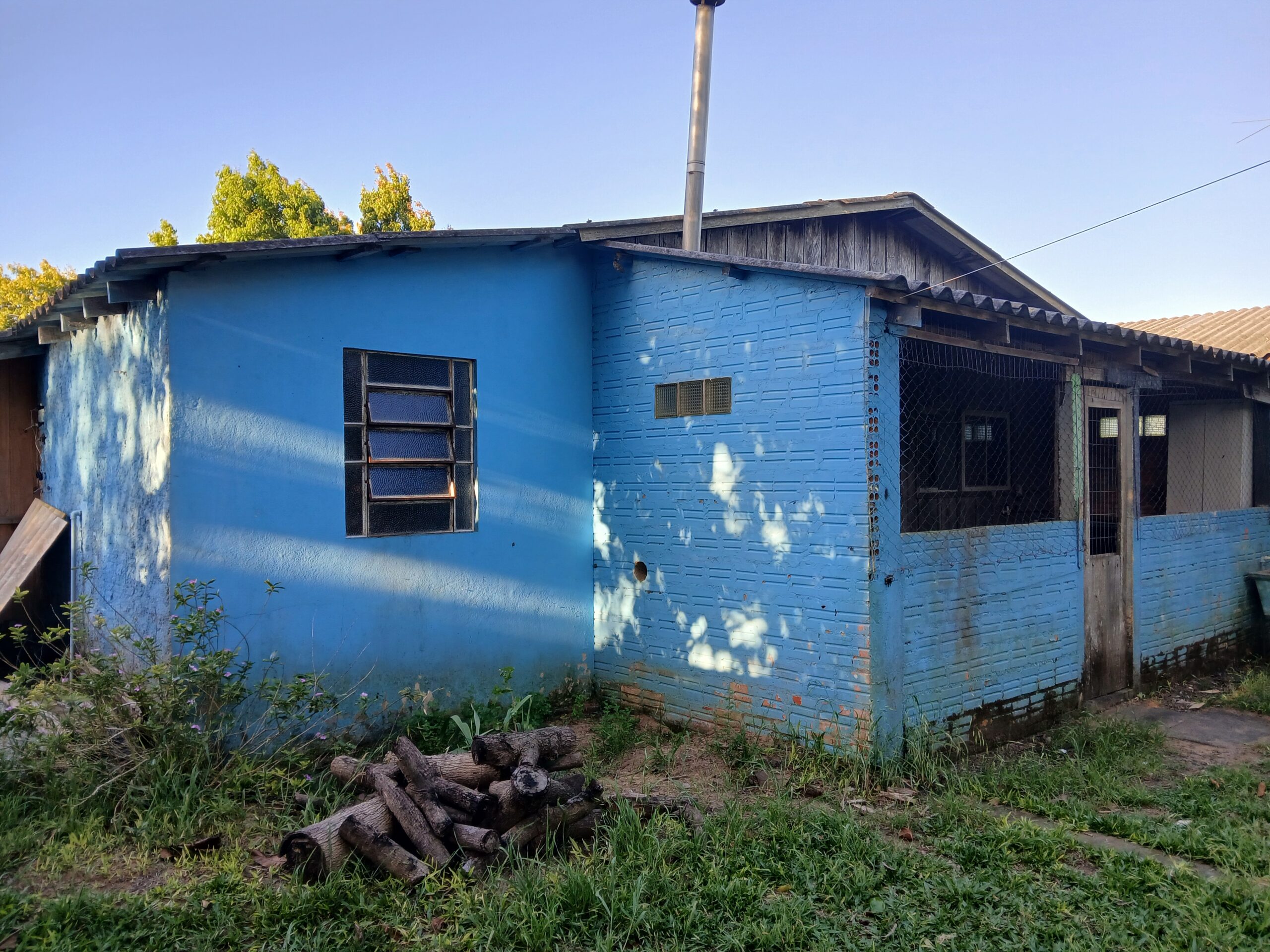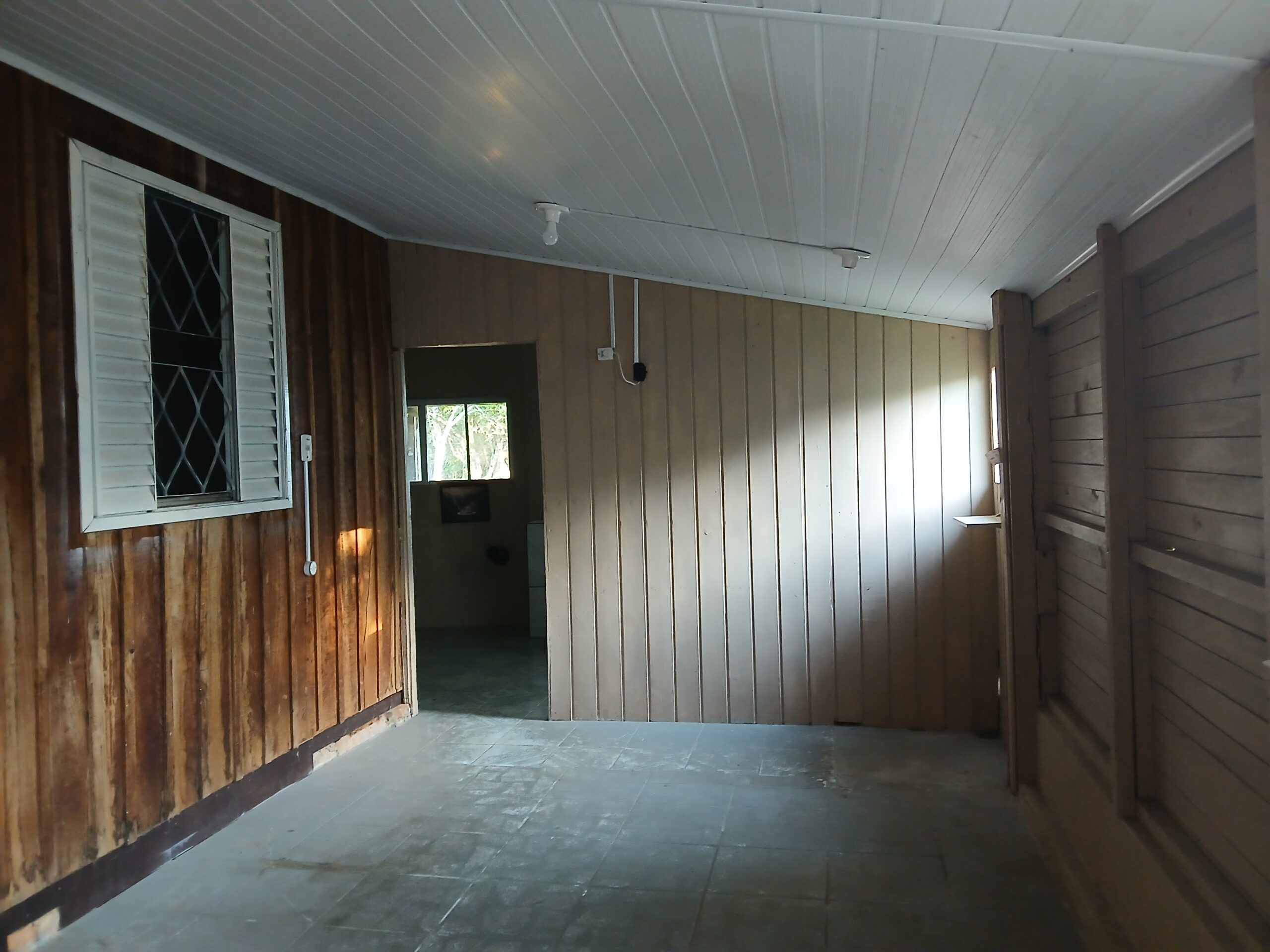 Casa mista com 3 dormitórios, sala, cozinha ampla com entrada para fogão a lenha, banheiro, lavabo, garagem e área nos fundos.