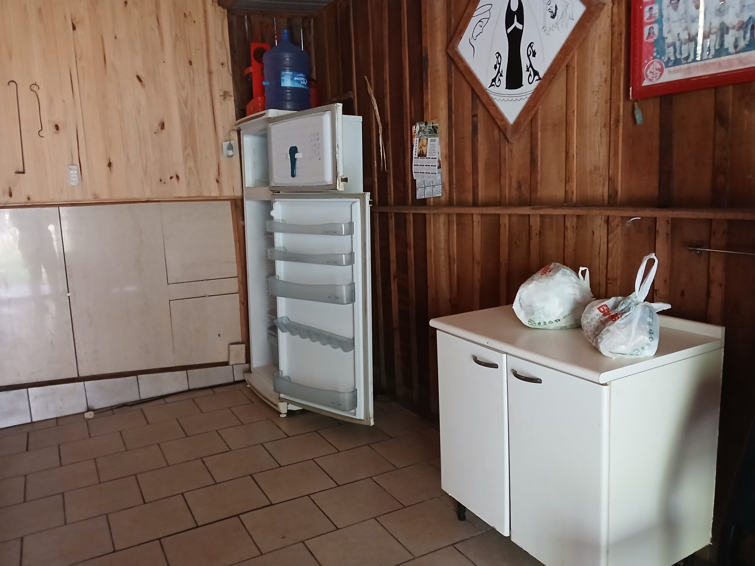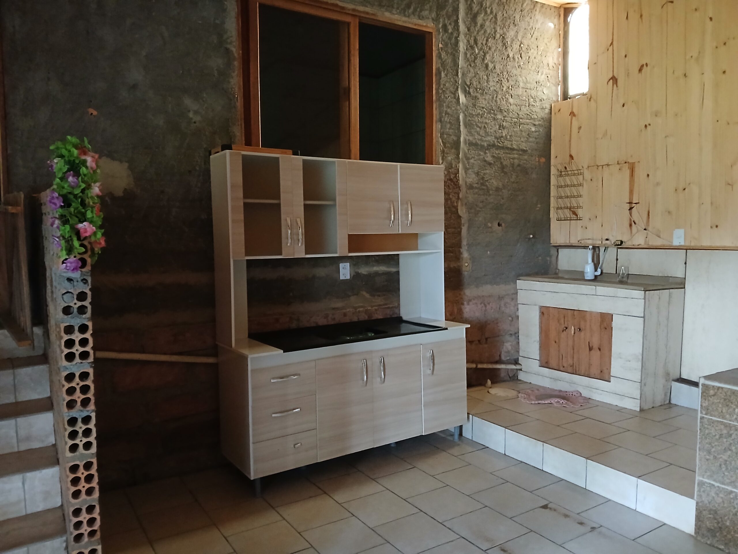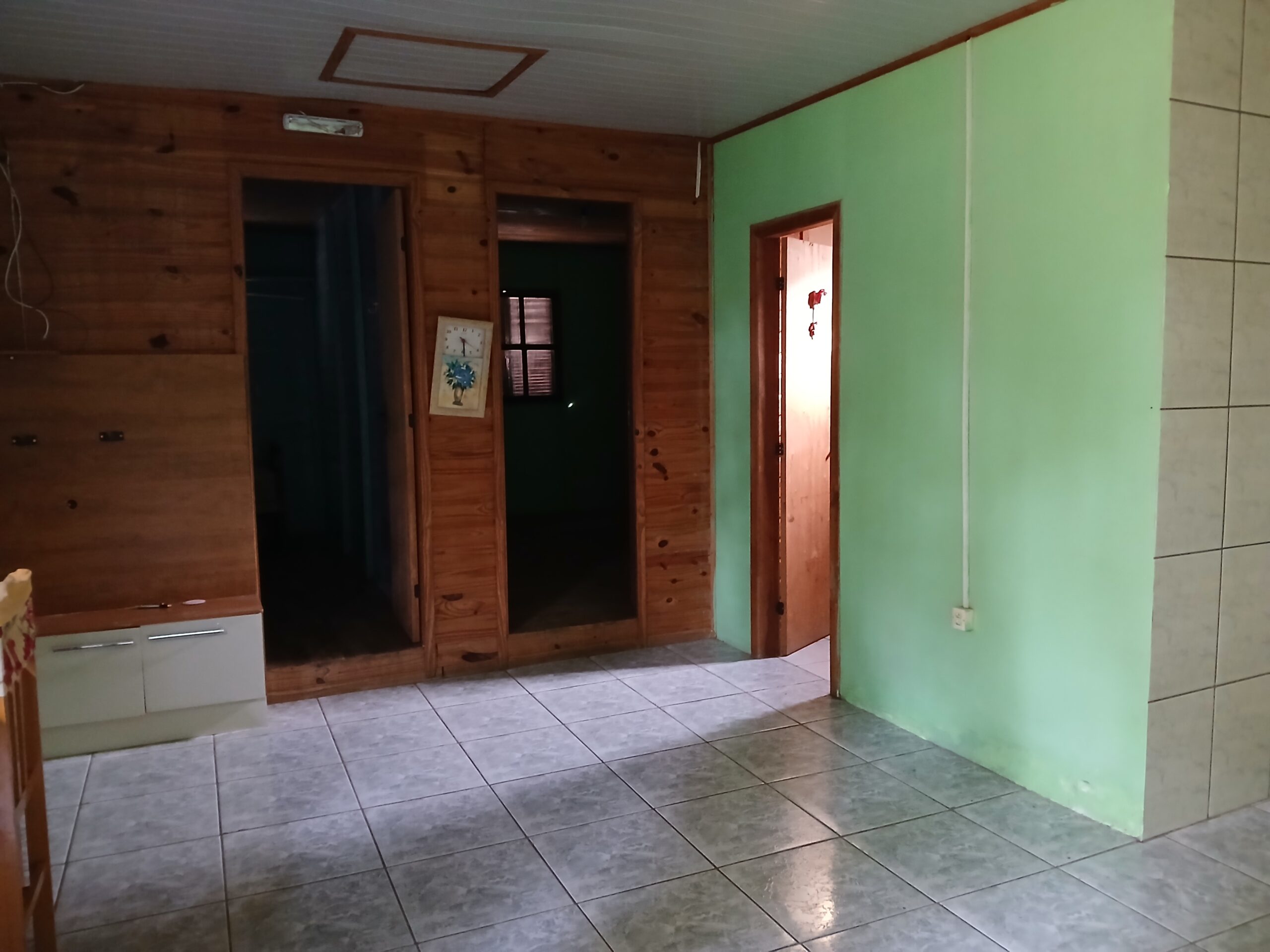 Casa mista com 3 dormitórios, sendo 1 uma suíte, cozinha espaçosa com fogão campeiro, banheiro com box de acrílico, sala ampla, avarandado, 2 ar condicionado, 3 refletores.