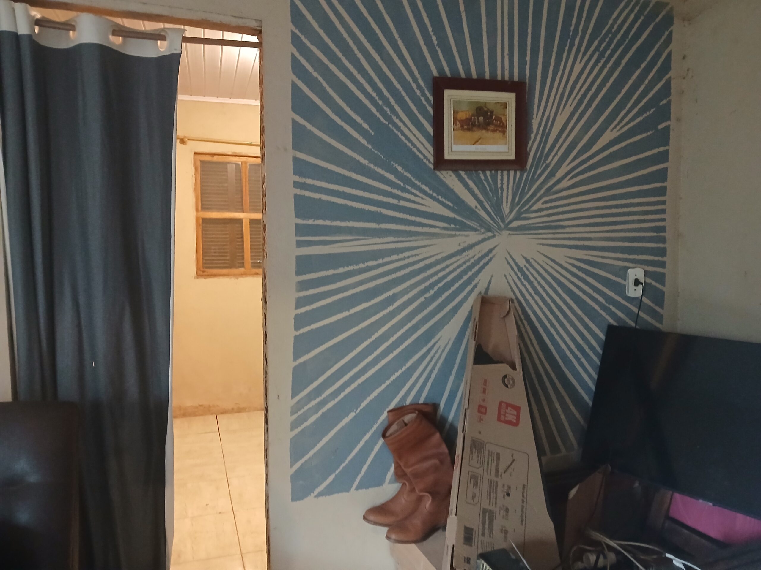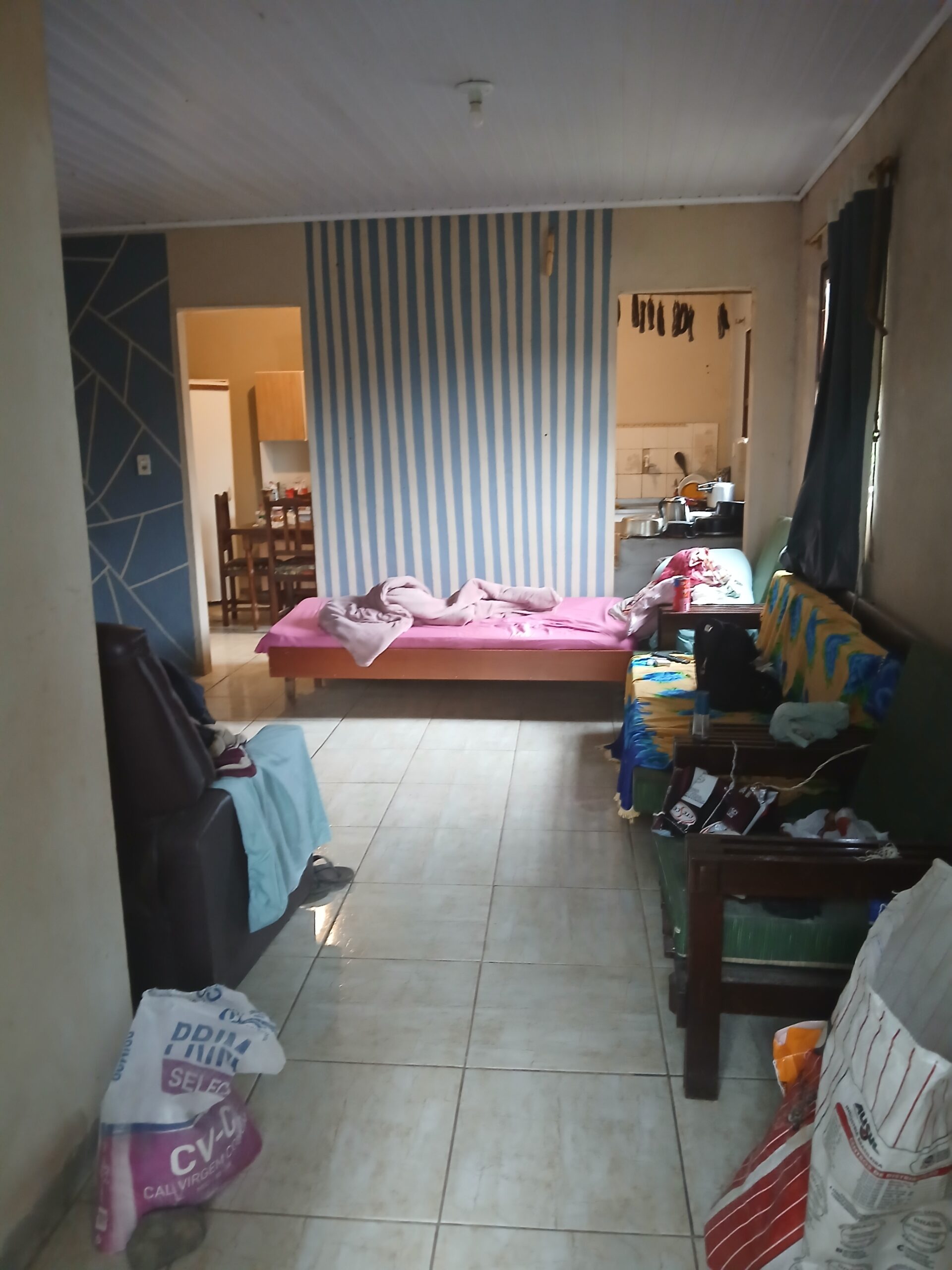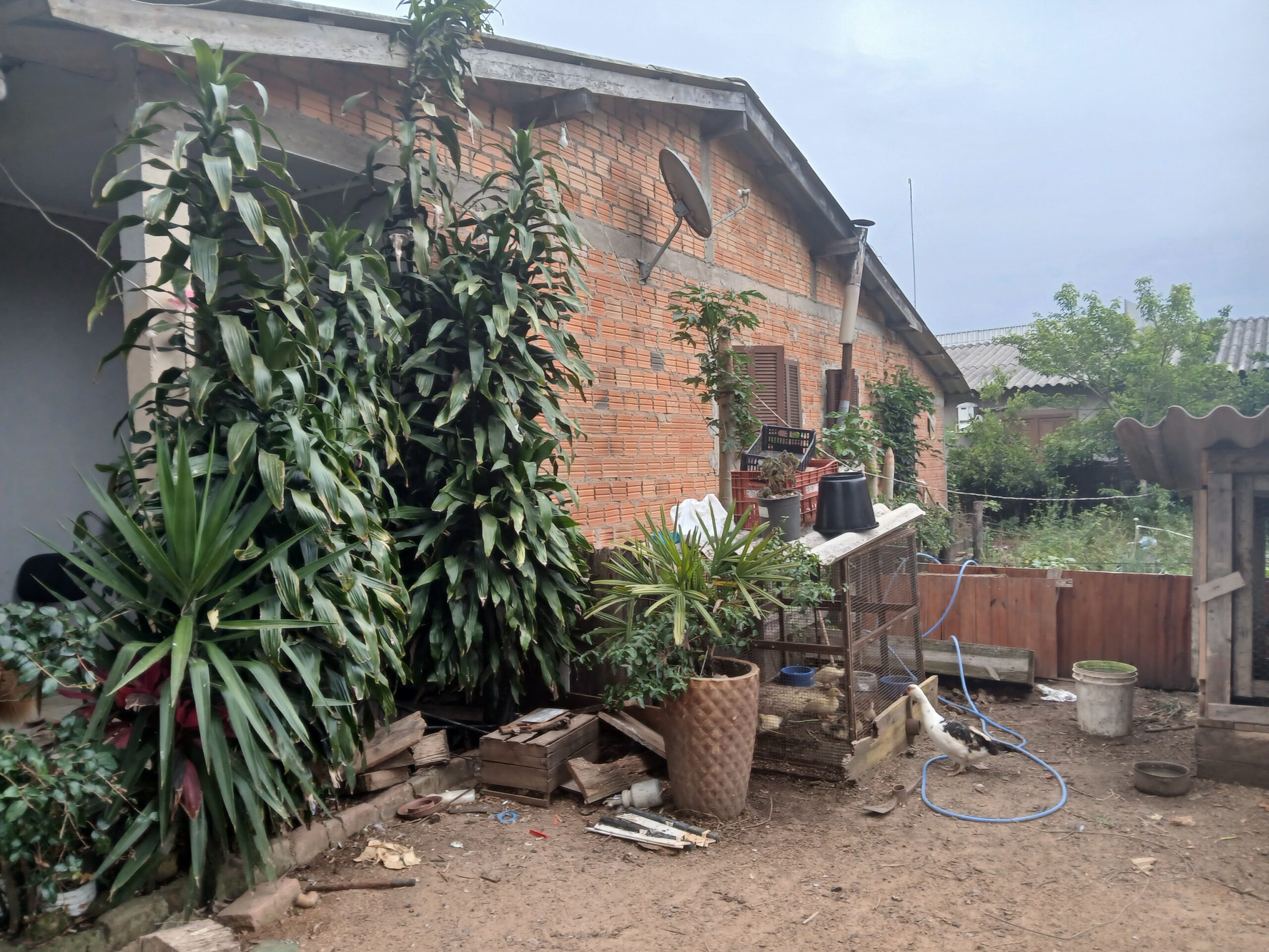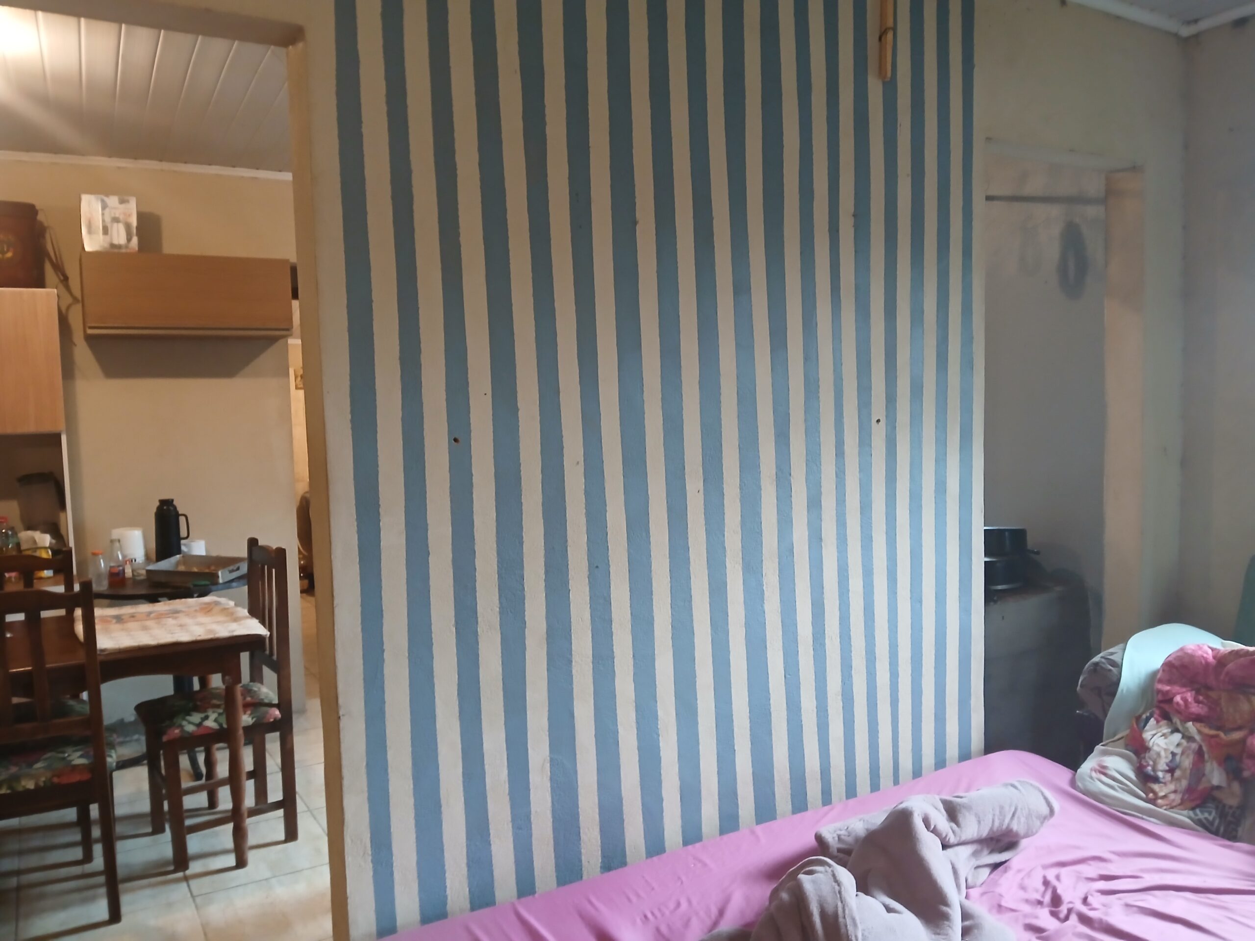 Casa com 2 dormitórios, sala, banheiro, cozinha com fogão campeiro.